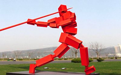 以體育運動為主題的不銹鋼景觀雕塑,包括但不限于舉重、乒乓球、體操、保齡球、冰壺、擊劍、射擊、高爾夫、拔河、排球、摔跤、雜技、標槍、棒球、游泳、滑冰、滑旱冰、滑板、滑雪、競走、籃球、網球、羽毛球、自行車、足球、跑步、跨欄、跳水、跳繩、跳遠、跳高等運動及其人物造型。